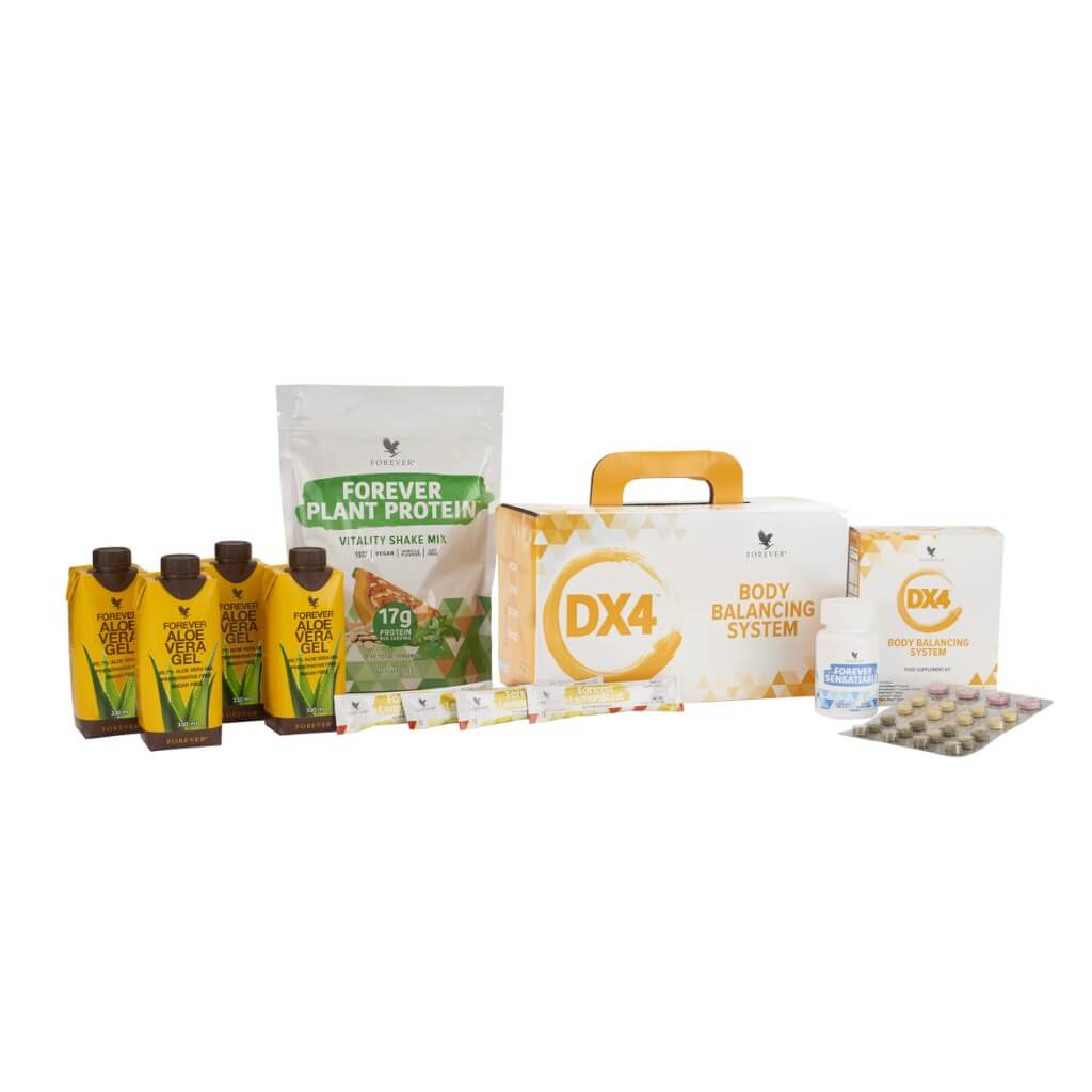 DX4 conține șase produse inovatoare, printre care se numără: Forever Therm Plus, Forever DuoPure, Forever Multi Fizz, Forever LemonBlast, Forever Sensatiable și Forever Plant Protein, dar și cele patru cutii de Aloe Vera Gel, pentru a completa nevoile corpului dumneavoastră.