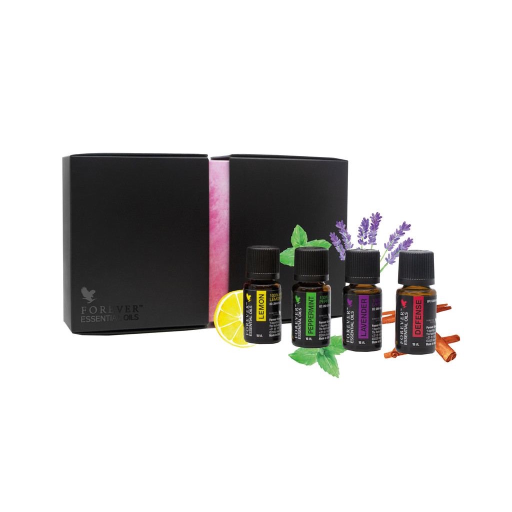 Pachetul contine: 1 Forever Essential Oils Lavender 15 ml, 1 Forever Essential Oils Lemon 15 ml, Forever Essential Oils Peppermint 15 ml, 1 Forever Essential Oil Defense 15 ml.